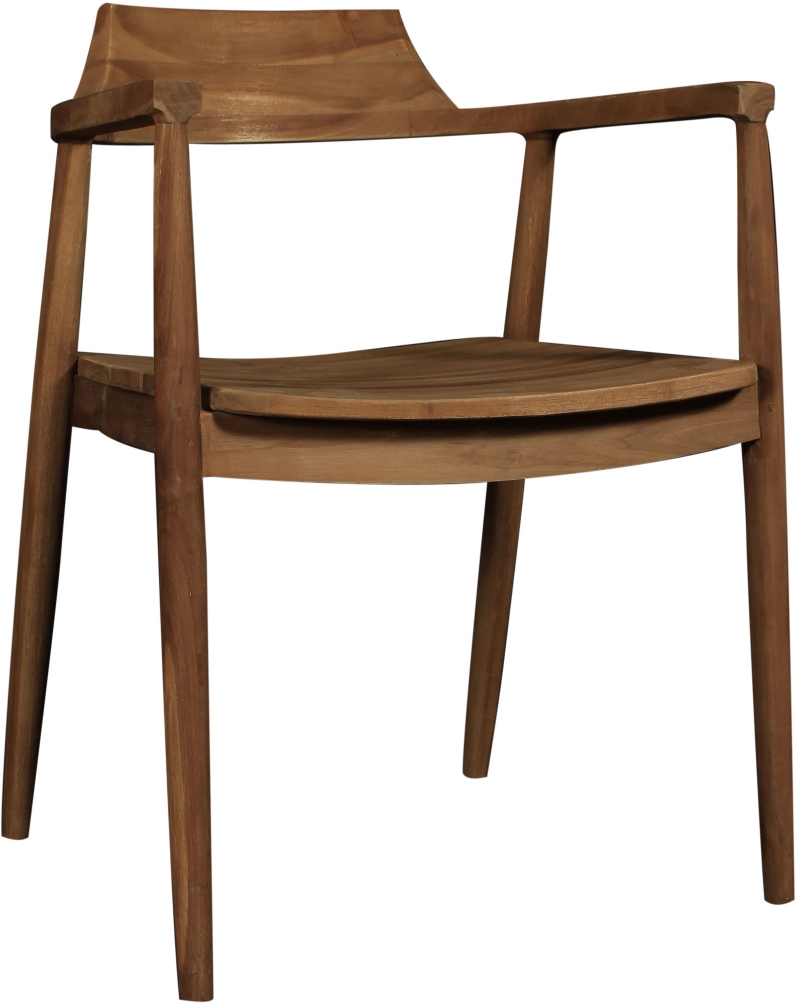 Xavier karmstol i massiv mörk teak med runda ben.