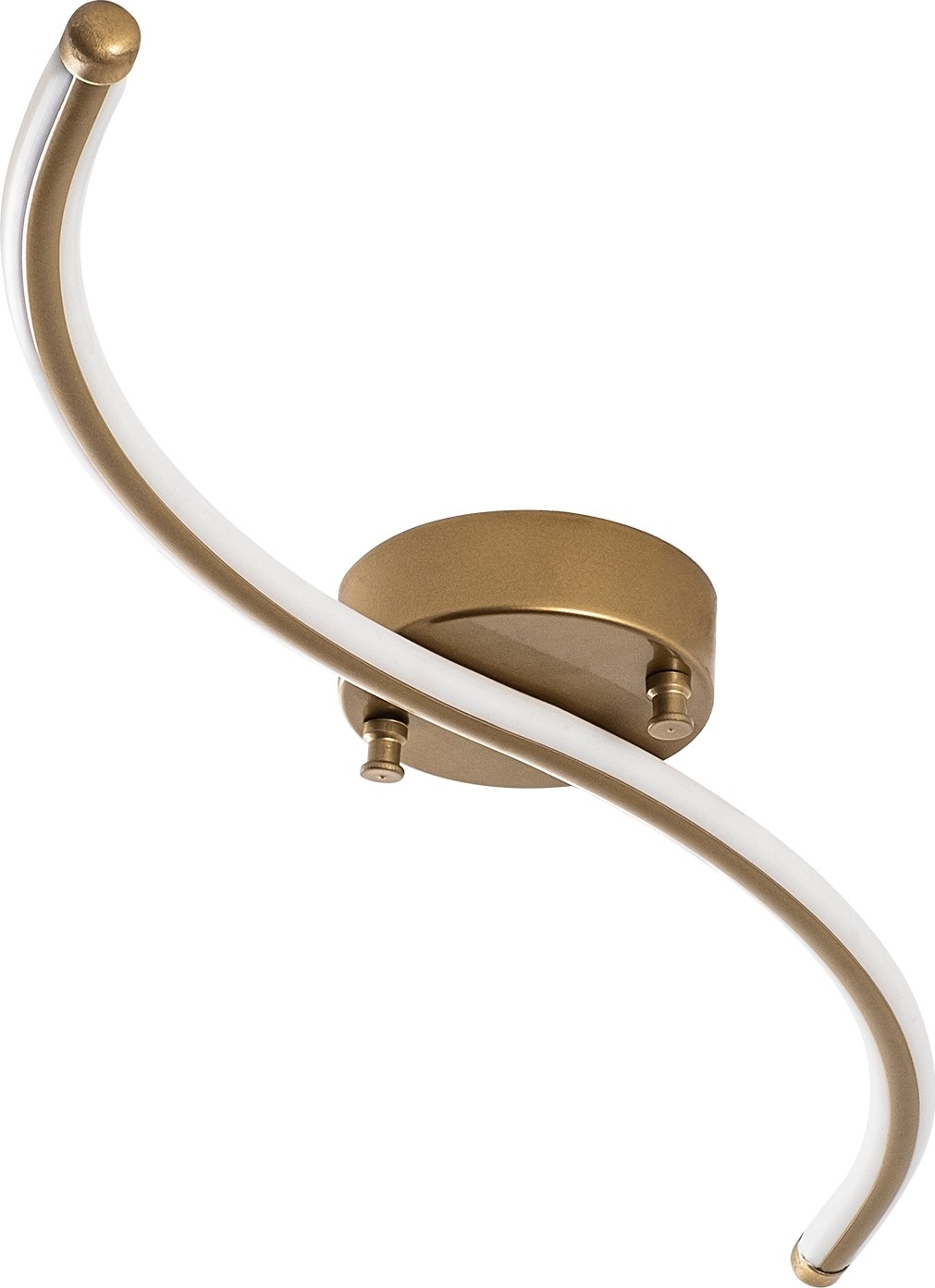 Taklampa av metall. Ljuskällan är integrerad i lampan och kan inte bytas ut.