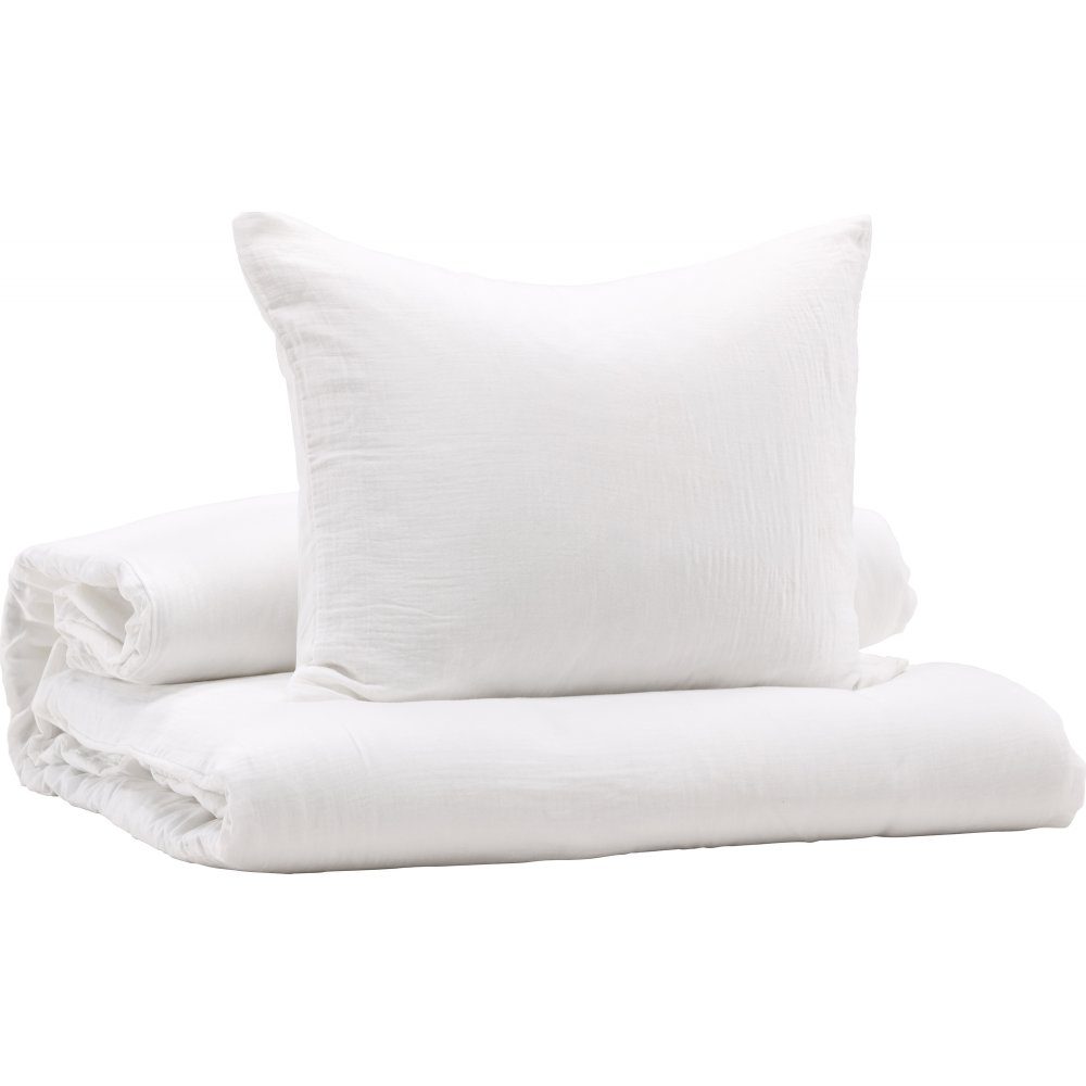 Mila bäddsätt har alla rätt - mysigt, snyggt och skönt. De här sängkläderna i bomullsväv är tvättåliga och står sig över tid. Bäddsetet är stilrent enfärgat i en smakfull vit kulör. Skapa den lyxiga hotellkänslan i ditt eget sovrum. Det här bäddsetet är lika gosigt att bädda ner sig i som skönt att sova på.