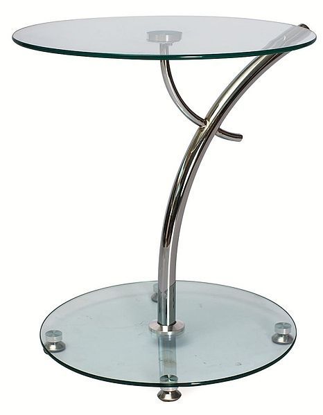 Ett mysigt lampbord med en modern design. Stommen är tillverkad av kromad metall och foten samt bordsskivan är av mycket tåligt härdat glas.