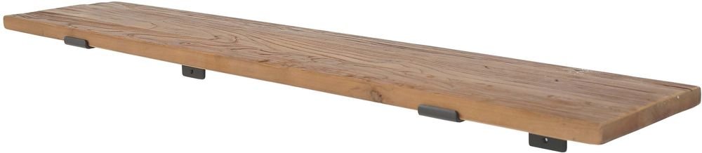 En robust vägghylla med en härlig känsla. Tillverkad i återvunnen alm trä och med svarta metallfästen. Monteras enkelt på plats.