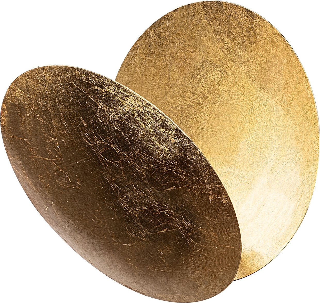 Vägglampa av metall som pulverlackerats i guldfärg. Ljuskällan består av integrerad, ytmonterad LED-belysning som lyser med ett varmvitt ljus (3000 K).