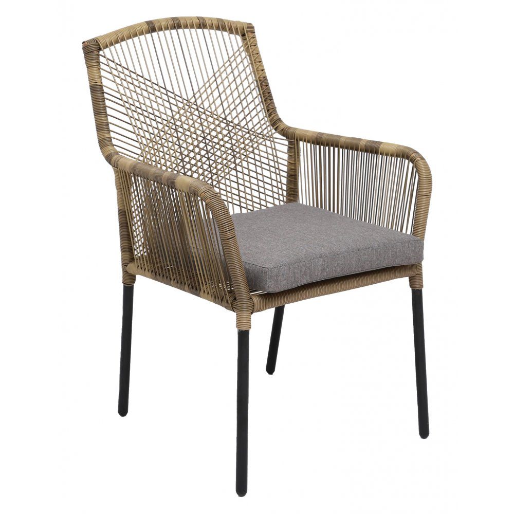 Ystad karmstol är en stilfull och bekväm stol som passar perfekt på uteplatsen, balkongen eller i trädgården. Den beige tvinnade konstrottingen ger en tidlös känsla, medan den grå dynan i väderbeständigt tyg gör stolen extra inbjudande för långa, avkopplande stunder utomhus.