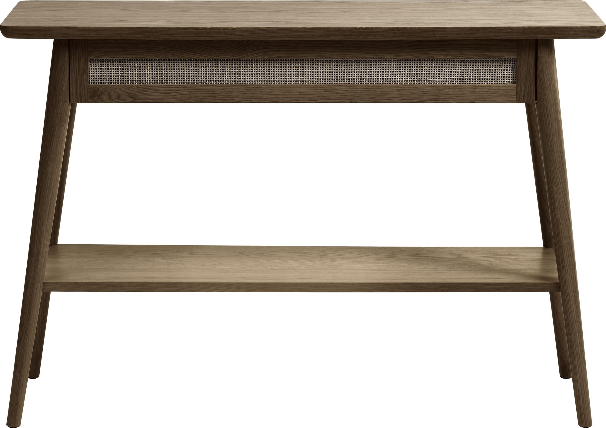 Yuma konsolbord i rökfärgad ek. Förvaringslåda med rottingdetaljer.