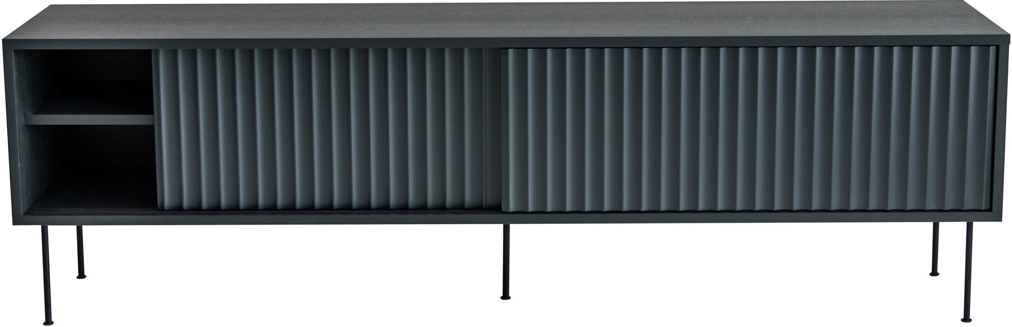 Tidslös och ren look då man kan dölja det man har inuti t ex router etc. Har 55 tum tv men bänken klarar nog upp till 68 tum utan att se ansträngd ut. Gillar färgen. Mörkgrå med en liten stänk grönt.