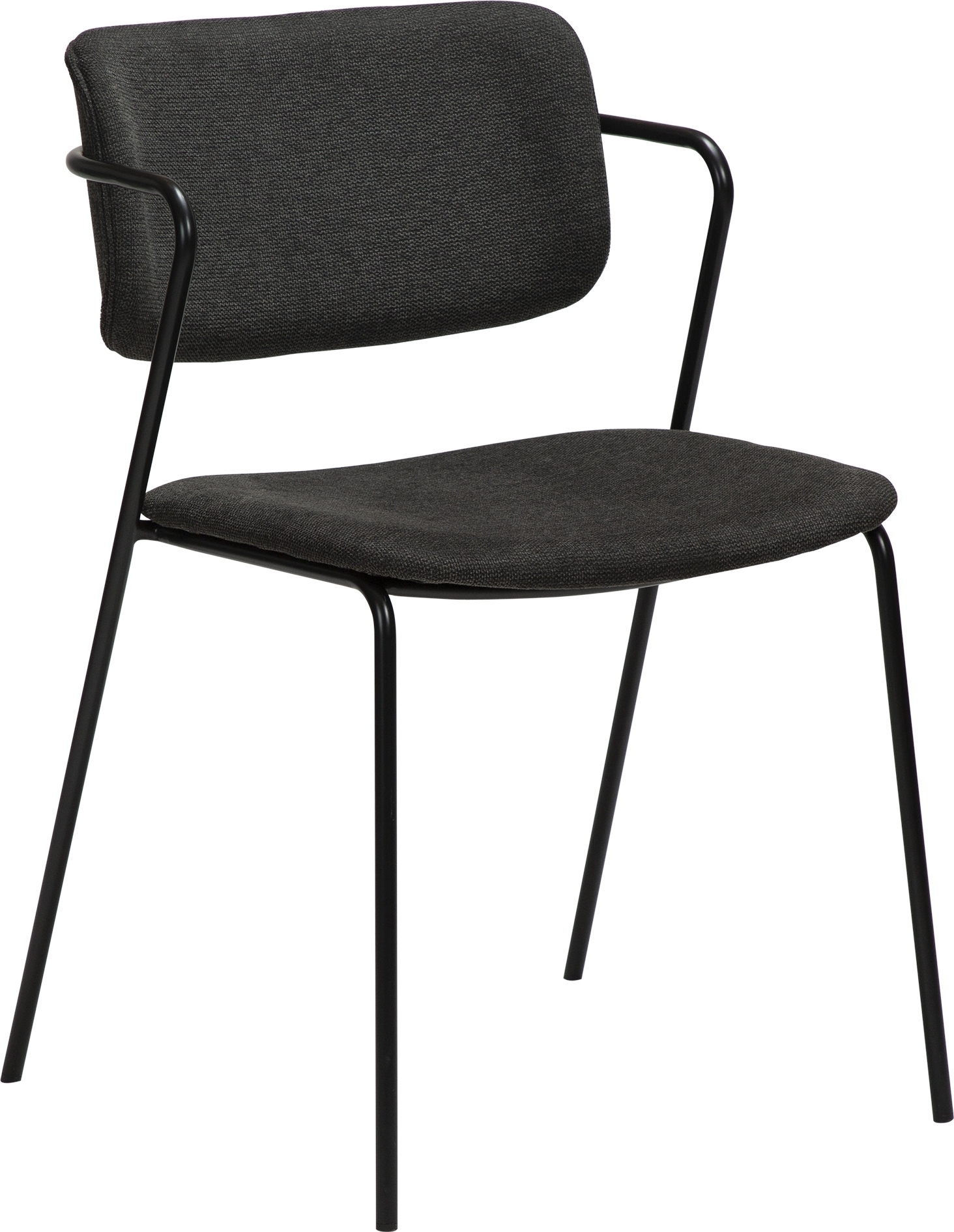 Karmstol med smala metallben som sträcker sig in i elegant vinklade armstöd och fortsätter bakom ryggen som gör att den nästan ser flytande ut. I kombination med ett högkvalitativt möbeltyg får stolen ett modernt utseende med strikta linjer som passar alla miljöer. Stolen är designad av Steffensen & Würtz för danska varumärket Dan-Form.