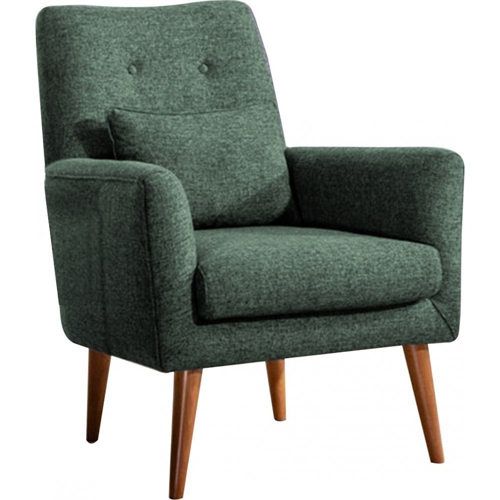Fåtölj av avenbok. Klädd med linne. Stoppning av skum. Ben av trä.