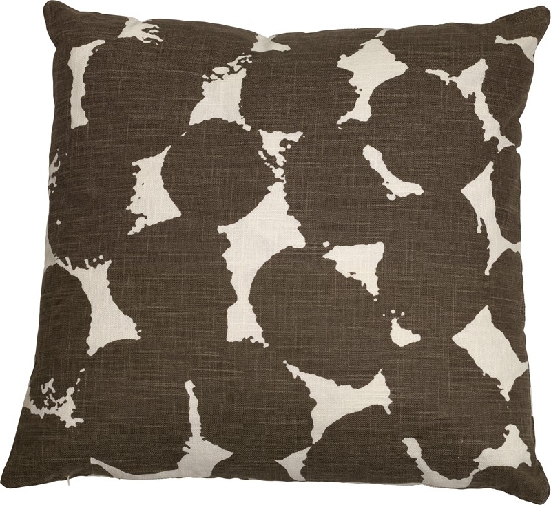 Stort tryckt bomullskuddfodral i behagliga jordnära färger.