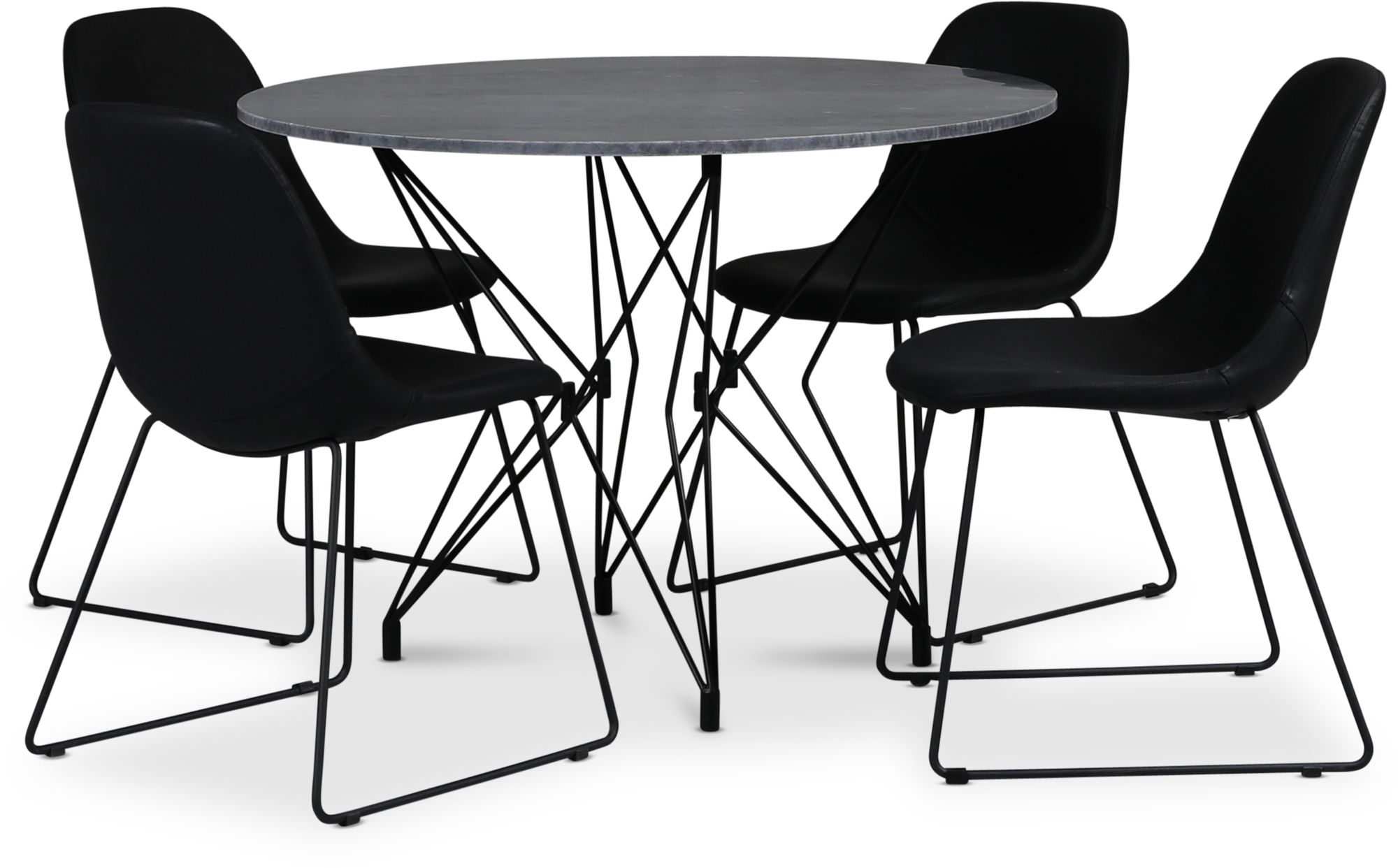 Zoo matgrupp Ø105 cm inkl. 4 st Atlantic sled stolar - Svart / Grå Marmor
