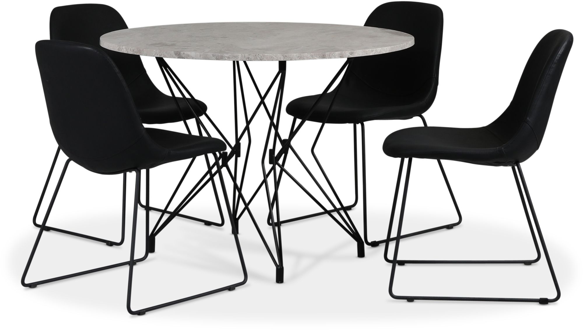 Zoo matgrupp Ø105 cm inkl. 4 st Atlantic sled stolar - Svart / Silver Marmor