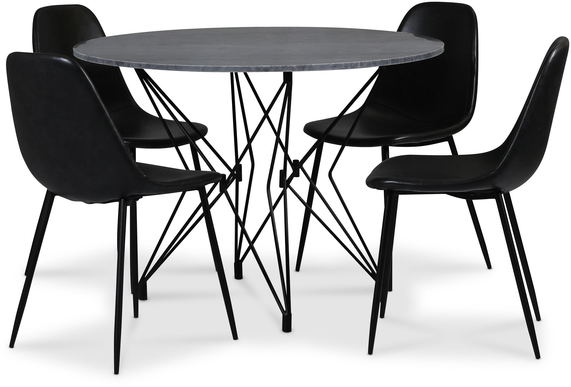 Zoo matgrupp Ø105 cm inkl. 4 st Bjurträsk svarta stolar - Svart / Grå Marmor