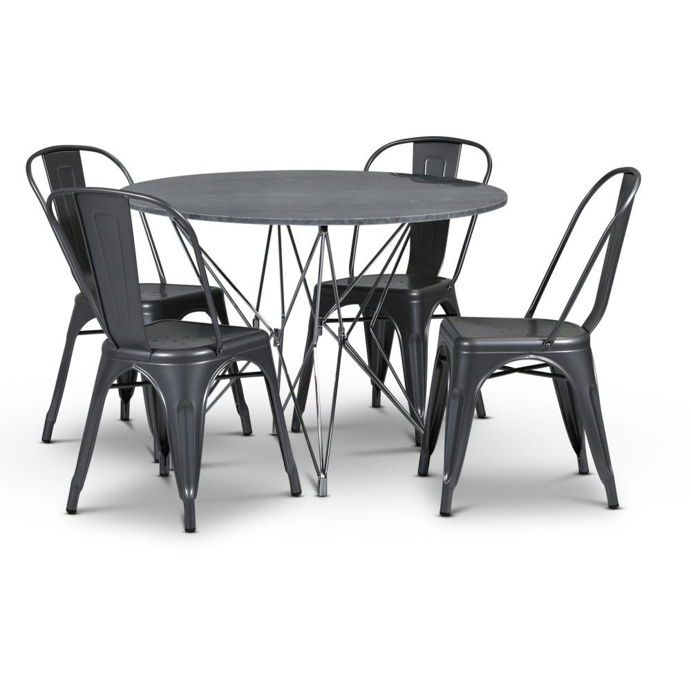 Zoo matgrupp Ø105 cm inkl. 4 st Plåtstolar Industry - Krom / Grå marmor