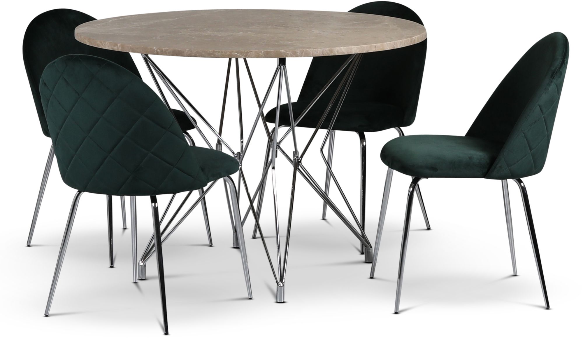 Zoo matgrupp Ø105 cm inkl. 4 st Plaza velvet stolar - Krom / Beige Empradore