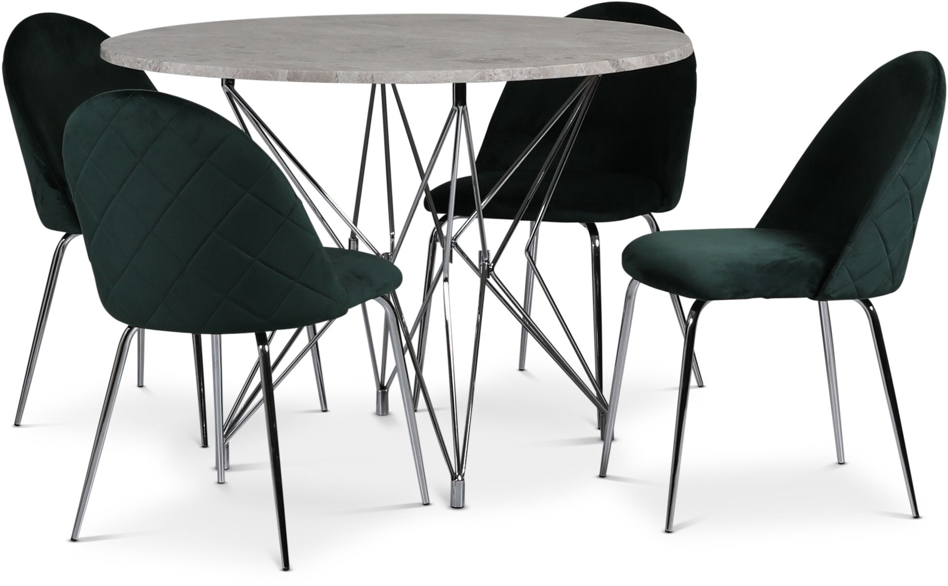 Zoo matgrupp Ø105 cm inkl. 4 st Plaza velvet stolar - Krom / Silver marmor